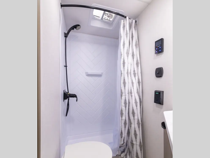 - Shower with surround (size varies by model)