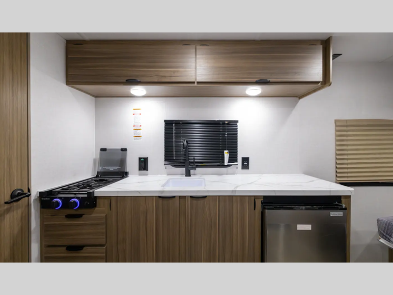 Sleeps 8 Slides 1 Length 22 ft 11 in Ext Width 7 ft 6 in Ext Height 10 ft 4 in Hitch Weight 545 lbs Dry Weight 4194 lbs Cargo Capacity 1451 lbs Fresh Water Capacity 39 gals Grey Water Capacity 30 gals Black Water Capacity 30 gals Furnace BTU 20000 btu Number Of Bunks 2 Available Beds Murphy Refrigerator Type Extra Large Black Glass 12V Cooktop Burners 2 Shower Size 36" x 24" Number of Awnings 1 Water Heater Type On Demand AC BTU 13500 btu Awning Info 14' Power with adjustable legs and LED lights Axle Count 1 Shower Type Standard Electrical Service 30 amp Similar Floorplans