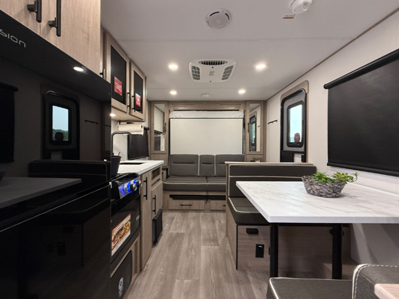 Sleeps 6 Length 23 ft 10 in Ext Width 8 ft Ext Height 10 ft 5 in Int Height 0 ft Hitch Weight 468 lbs GVWR 6395 lbs Dry Weight 4538 lbs Fresh Water Capacity 37 gals Grey Water Capacity 45 gals Black Water Capacity 37 gals Tire Size ST215/75R14LRD Furnace BTU 20000 btu Available Beds Queen Refrigerator Type 12V Refrigerator Size 10 cu ft Convection Cooking Yes Cooktop Burners 2 Number of Awnings 1 LP Tank Capacity 20 lbs Water Heater Type On Demand Tankless AC BTU 13500 btu Cargo Deck Size 0 ft TV Info LR High Def TV Awning Info 16' Adjustable Power with LED Lighting Axle Count 1 Number of LP Tanks 2 Shower Type Standard Electrical Service 30 amp Similar Floorplans