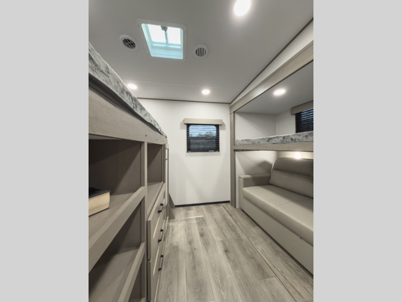 Sleeps 10 Slides 1 Length 32 ft 3 in Ext Width 8 ft Ext Height 12 ft 3 in Hitch Weight 1280 lbs GVWR 10195 lbs Dry Weight 8200 lbs Fresh Water Capacity 55 gals Grey Water Capacity 78 gals Black Water Capacity 39 gals Tire Size ST225/75R15 LRE Furnace BTU 30000 btu Number Of Bunks 2 Available Beds Queen Refrigerator Type 12V Refrigerator Size 10 cu ft Cooktop Burners 3 Shower Size 30" x 36" Number of Awnings 1 LP Tank Capacity 30 lbs Water Heater Type On Demand Tankless AC BTU 15000 btu TV Info LR 40" High-Definition LED TV Awning Info 20' One Touch Electric LED Axle Count 2 Number of LP Tanks 2 Shower Type Walk-In Shower Electrical Service 50 amp Similar Floorplans