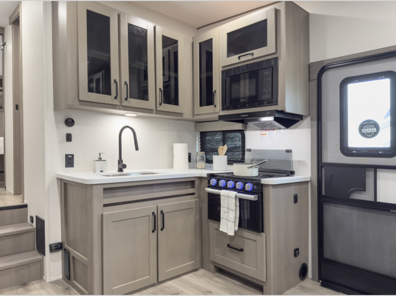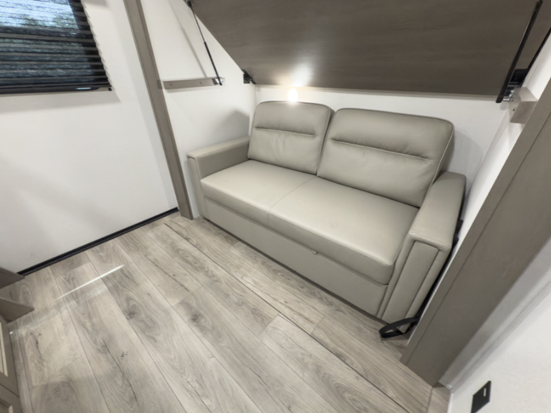 You will be able to enjoy your fifth wheel for years to come since there are full laminated walls, a double insulated roof, front cap, and floor, plus gel coated exterior sidewalls. The Arctic 4-Seasons Protection Package will allow you to camp during the colder months or even go full-time, and the Solar Package will provide off-grid capabilities! There are two additional packages; the Peace of Mind Package and Ultimate Power Package that include residential cabinetry and pleated shades, a "one-touch" electric awning with LED lights, and a Compass Connect system to stay informed on all your units functions!