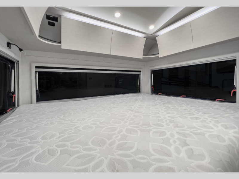 Some of the stand-out features include a power stabilizing system for easy set up, a 200W solar panel, and Azdel sidewall construction. There is an aluminum frame for added durability, plus an enclosed underbelly for protection against the elements. A molded fiberglass front cap with an automotive windshield is eye-catching, and an armless cassette awning features an integrated LED light so you can visit outdoors with campground neighbors.