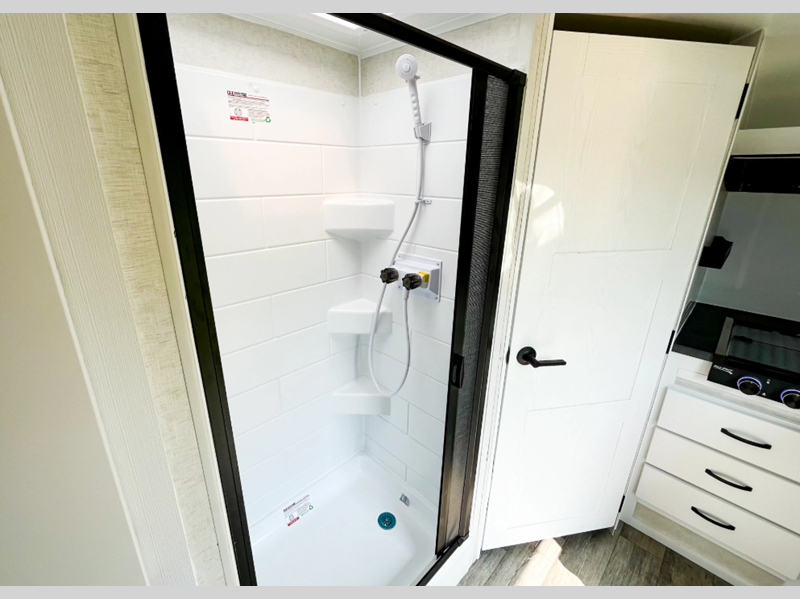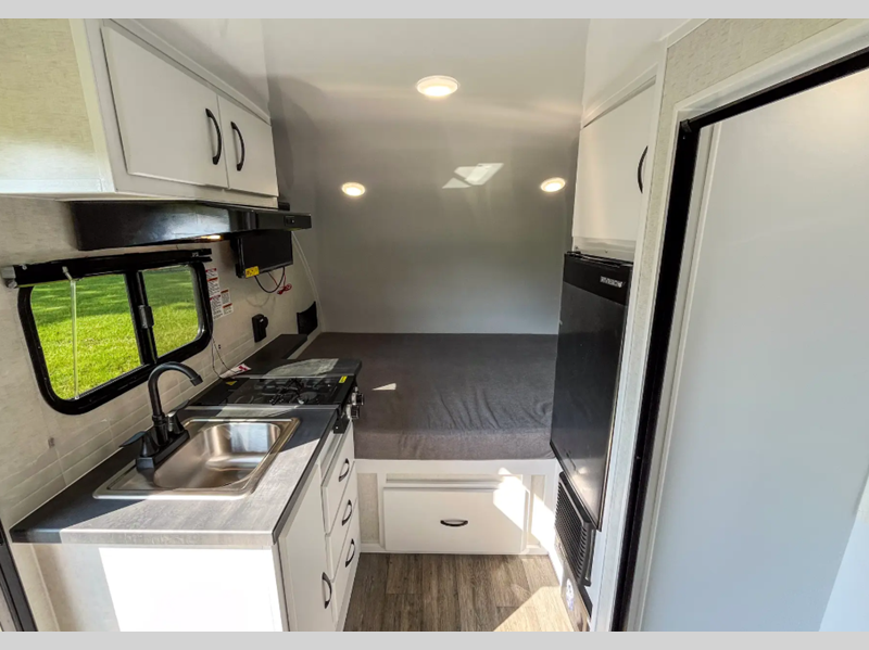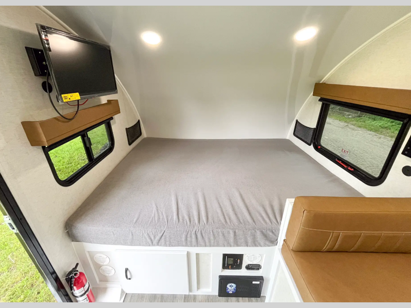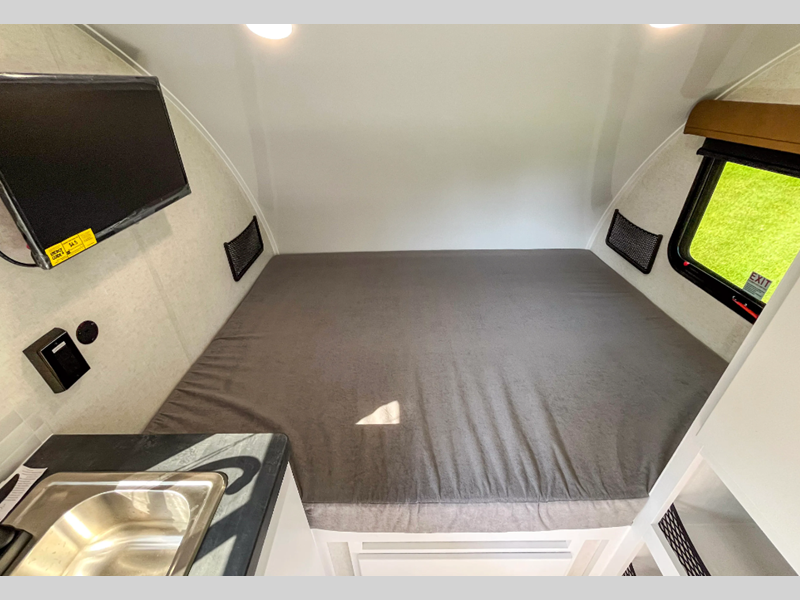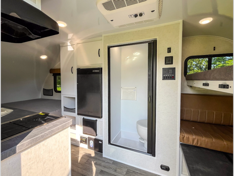 Sleeps 5 Length 18 ft 8 in Ext Width 6 ft 11 in Ext Height 9 ft 8 in Int Height 6 ft 2 in Dry Weight 2650 lbs Fresh Water Capacity 16 gals Grey Water Capacity 32 gals Black Water Capacity 32 gals Tire Size ST235-75R15 Furnace BTU 19000 btu Number Of Bunks 1 Available Beds RV Queen Refrigerator Type Large Cooktop Burners 2 Axle Weight 3500 lbs Water Heater Type Fogatti On Demand AC BTU 13500 btu TV Info 12V 24" HDTV Axle Count 1 Shower Type Wet/Bath Shower Similar Floorplans