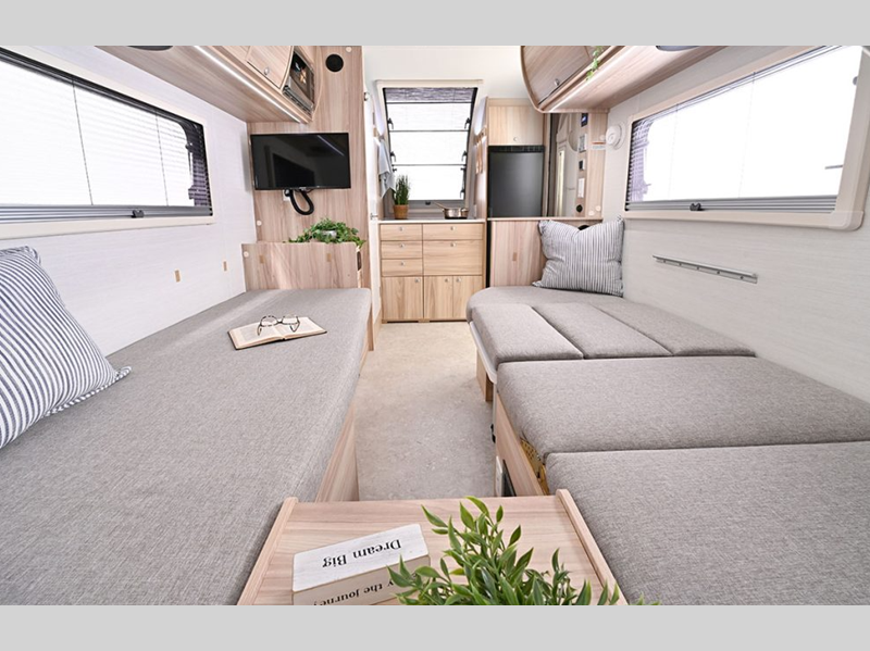 Slides 2 Length 16 ft 8 in Ext Width 7 ft 4 in Ext Height 8 ft 8 in Int Height 6 ft 4 in Exterior Color Elevation, Mountain Pass Hitch Weight 359 lbs Dry Weight 2605 lbs Fresh Water Capacity 25 gals Grey Water Capacity 18 gals Black Water Capacity 5 gals Tire Size 235/75R15 Refrigerator Type 12V Compressor Refrigerator Size 5 cu ft Cooktop Burners 2 Axle Weight 3900 lbs TV Info 24" Smart TV Axle Count 1 Shower Type Wet/Bath Shower Solar Wattage 380 watts -