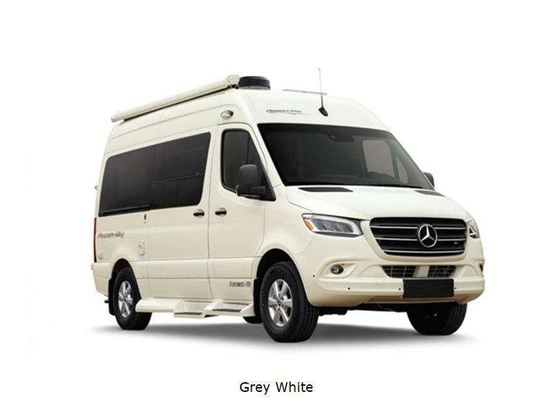 Sleeps 3 Length 19 ft 5 in Ext Width 7 ft 11 in Ext Height 9 ft 8 in Int Height 6 ft 3 in Interior Color Cashmere, Flint Exterior Color Grey White, Brilliant Silver Metallic Hitch Weight 4880 lbs GVWR 9050 lbs Fresh Water Capacity 20 gals Grey Water Capacity 15 gals Black Water Capacity 12 gals Tire Size LT245/75R16 Furnace BTU 11500 btu Generator 2.5KW Onan QG 2500i LP Fuel Type Diesel Engine 4-Cylinder OM 654 High Output Chassis Mercedes Benz Sprinter 2500 Van Horsepower 211 hp Fuel Capacity 24.5 gals Wheelbase 144 in Refrigerator Type 12V Refrigerator Size 3.2 cu ft Cooktop Burners 1 Number of Awnings 1 LP Tank Capacity 8.16 gals Water Heater Type Truma AquaGo Comfort Plus AC BTU 13500 btu TV Info 24" Smart LED TV Awning Info Fiamma Power with LED Lights Gross Combined Weight 13930 lbs Shower Type Wet/Bath Shower Electrical Service 30 amp