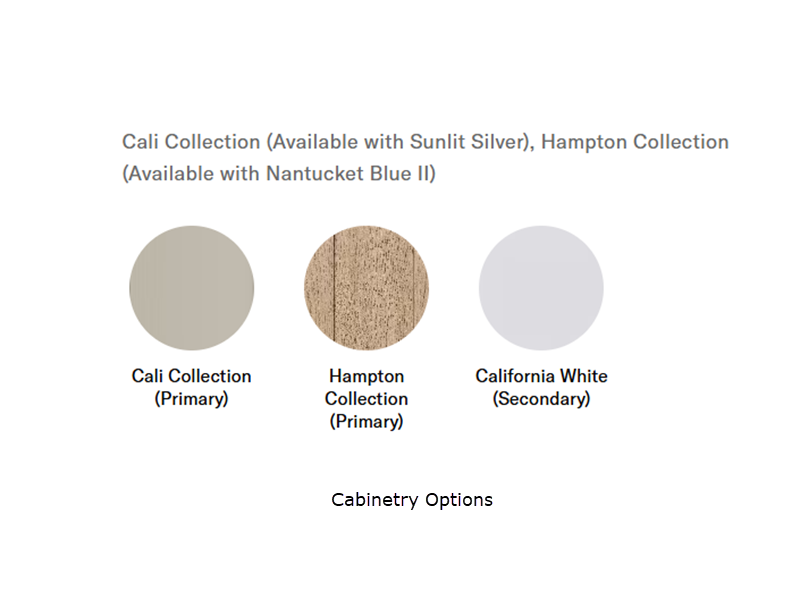 - Cali Collection. Coastline Grey Flat Panel Cabinet Doors. Black Nickel Kitchen Faucet, and Door Pulls. Bath Hardware is all Brushed Nickel Including All Faucets (Optional)