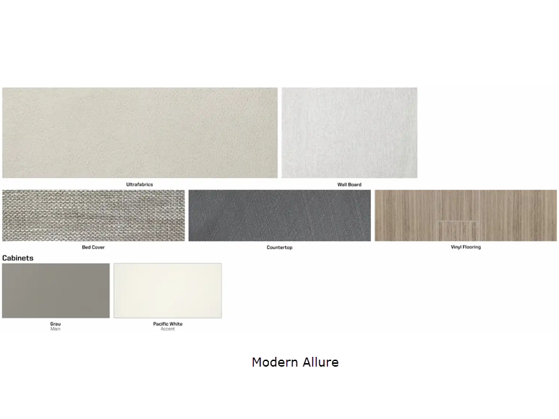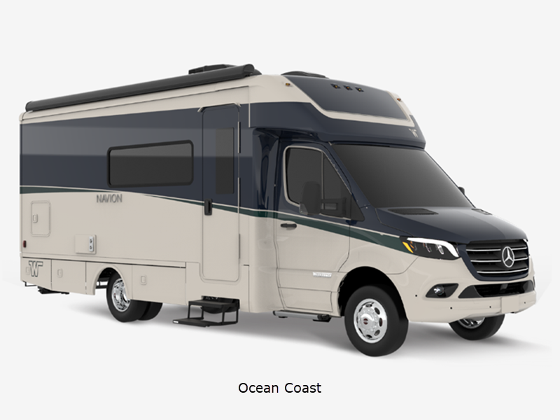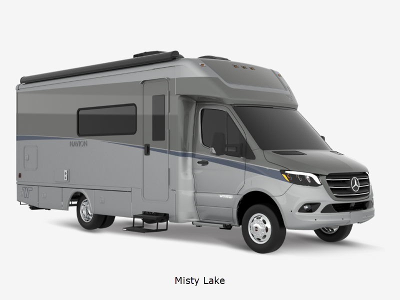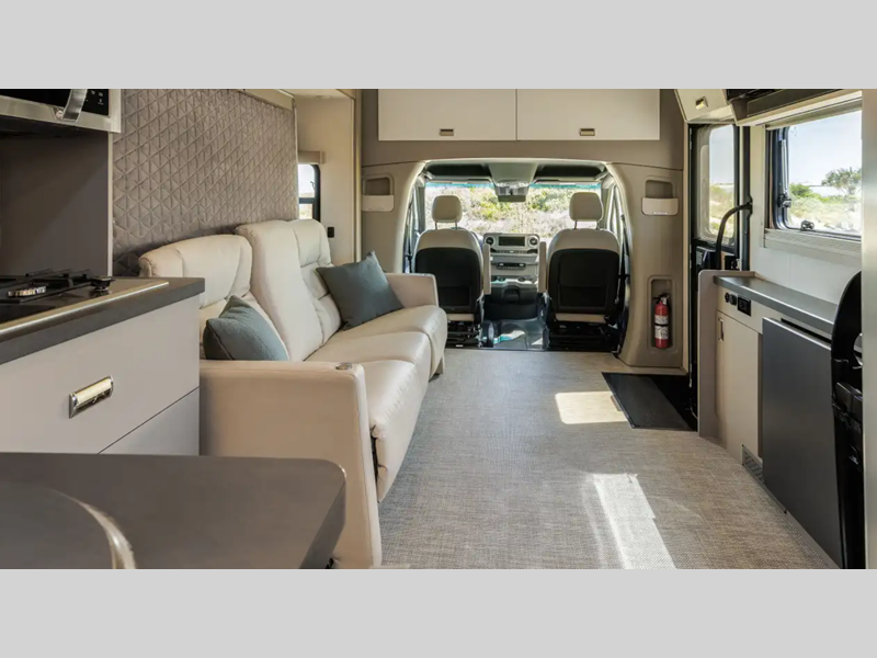 Sleeps 4 Slides 1 Length 25 ft 8 in Ext Width 7 ft 7 in Ext Height 10 ft 7 in Int Height 6 ft 8 in Interior Color Hygge Haus ll, Mod Allure ll Exterior Color Carbonite Gray, Misty Lake, Ocean Coast Hitch Weight 5000 lbs GVWR 11030 lbs Fresh Water Capacity 35 gals Grey Water Capacity 46 gals Black Water Capacity 47 gals Furnace BTU 25000 btu Fuel Type Diesel Engine 2.0L High Output Turbo Diesel 4-Cylinder Chassis Mercedes-Benz RWD Sprinter Fuel Capacity 24.5 gals Wheelbase 170 in Number Of Bunks 1 Available Beds Twin Beds with King Conversion Refrigerator Type 12V Two Door Compressor Driven Refrigerator Size 10 cu ft Convection Cooking Yes Cooktop Burners 2 Shower Size 25" x 30" Number of Awnings 1 Axle Weight Front 4410 lbs Axle Weight Rear 7720 lbs LP Tank Capacity 50.76 Water Heater Type Truma AquaGo Comfort Plus Tankless AC BTU 15000 btu Basement Storage 80.9 cu. ft. TV Info 32" LED HDTV, BR 24" LED HDTV Awning Info 16' Power with LED Lights & Bluetooth Control Gross Combined Weight 15250 lbs Shower Type Standard Electrical Service 30 amp Solar Wattage 240 watts Similar Floorplans
