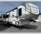 Time at the campground will be spent in comfort thanks to this fifth wheel that can sleep four to six people comfortably. The rear living area/den includes a huge L-shaped sofa with theater seats and a king tri-fold sofa, plus a free-standing dinette, a fireplace, and an LED HDTV for movie nights. The chef of your group will love the additional counter space in the kitchen, along with a 21" Furrion range, a pantry, plus bar stool seating. The full bath allows you to clean up each day and the front private bedroom will provide you with your own space at night. Here, you'll find a queen bed slide out that can optioned out for a king bed, plus a full height wardrobe, a second wardrobe with washer and dryer prep, and a dresser for tons of storage space!